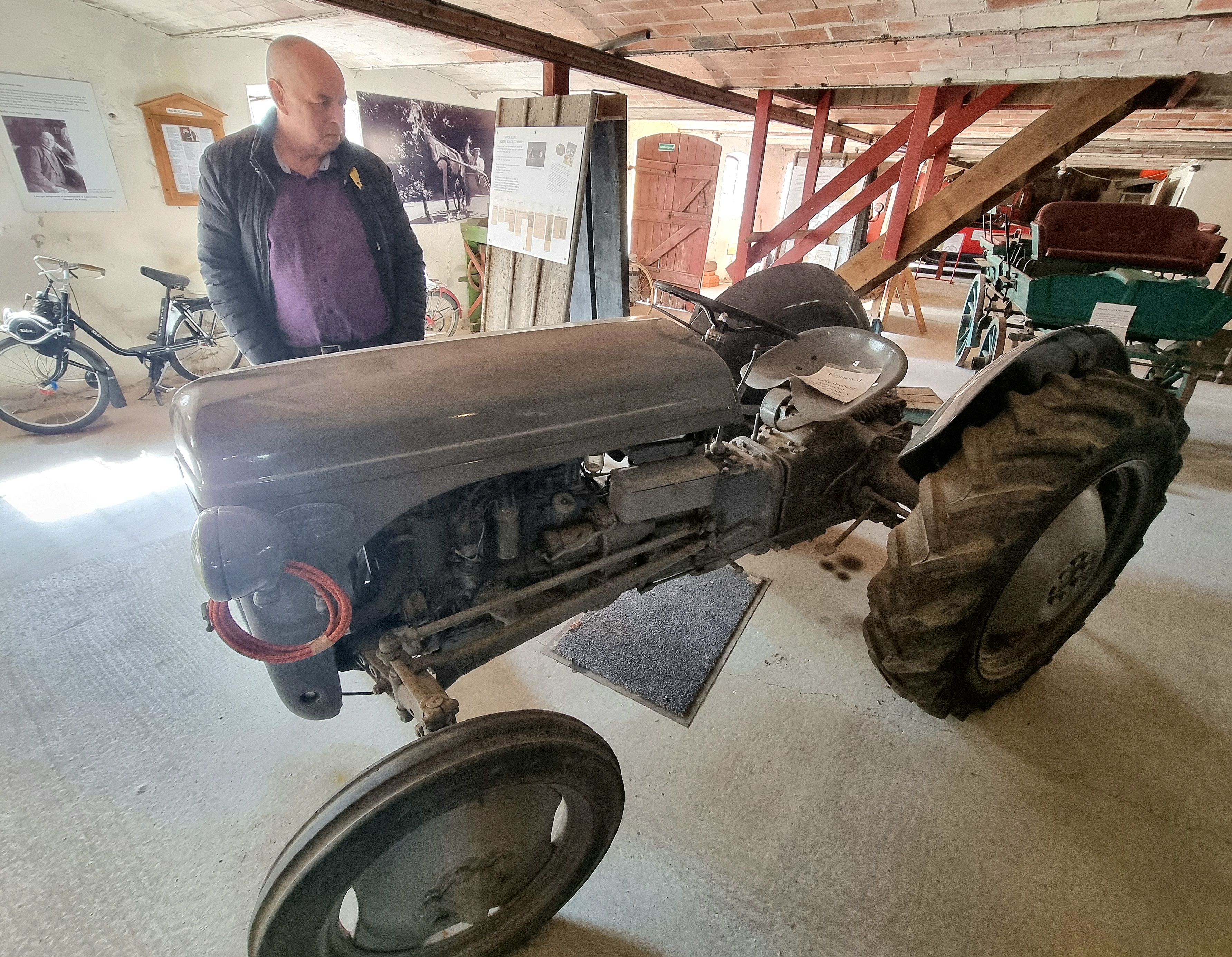 Det førte til en Volvo traktor, en mejetærsker, en grå Ferguson traktor som mange af de mandlige gæster gerne klapper "sådan én har vi selv haft", lyder det tit, knallerter og cykler, en jeep for ikke at glemme en lille hjørnestue med et lærred og en fremviser på bord.