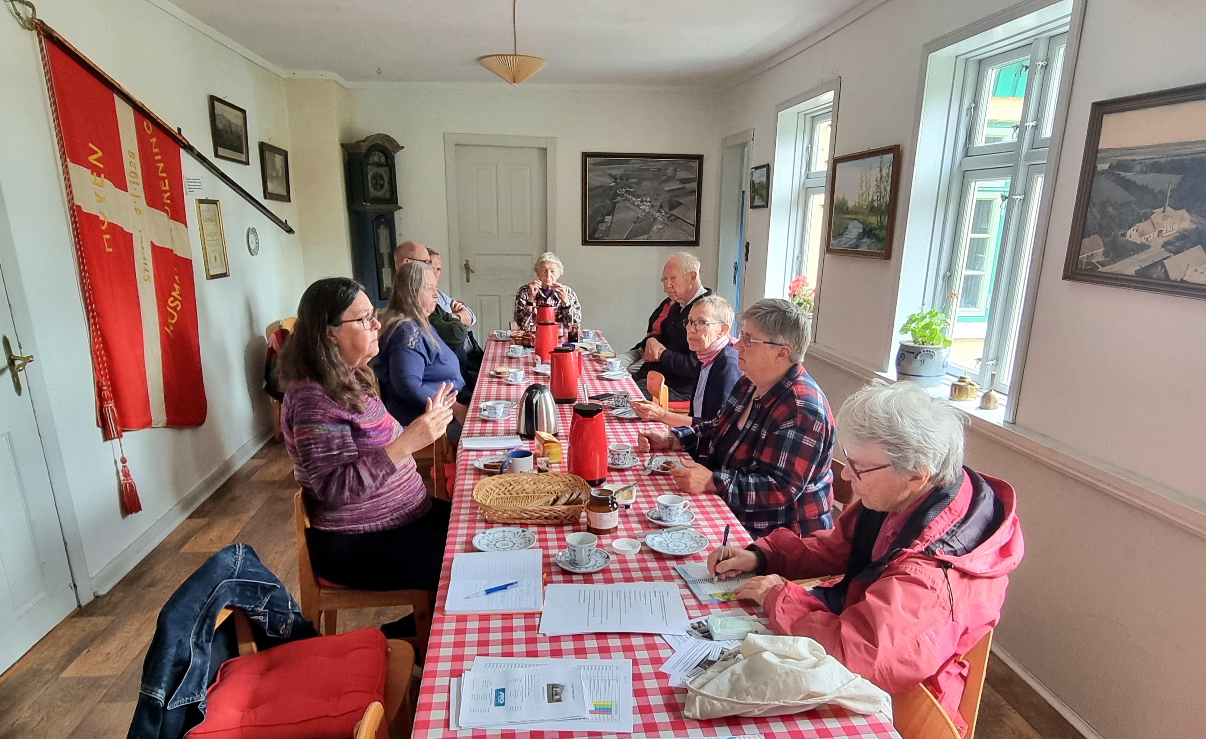 Vi sidder ved det langbordet i den tidligere spisesal, drikker kaffe og taler os gennem arbejdet med at passe og udvikle museet i landsbyen med et par hundrede beboere mellem Skjern og Grindsted.