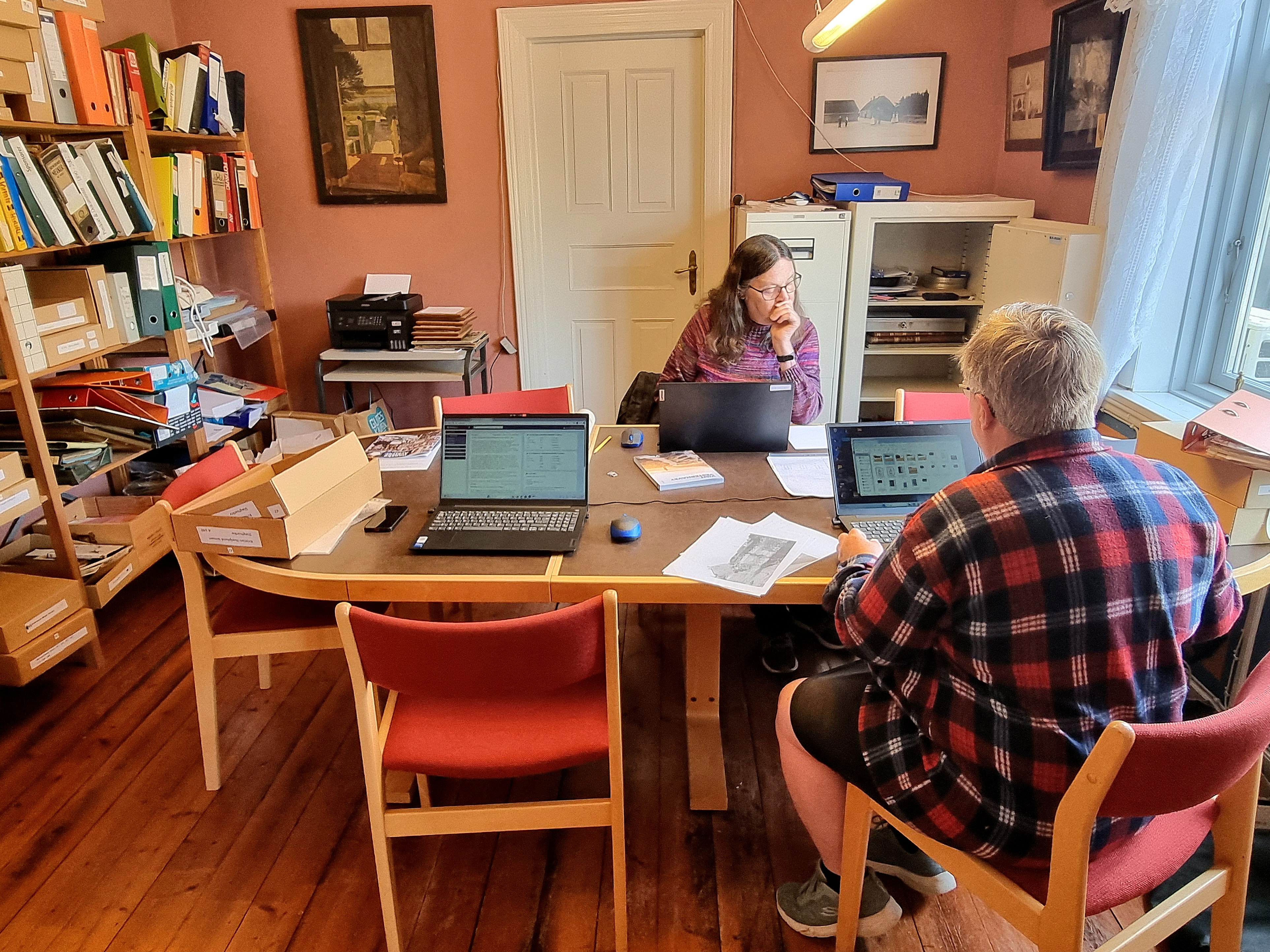 I dag har hun bl.a. travlt med at registrere fotos i arkivet.