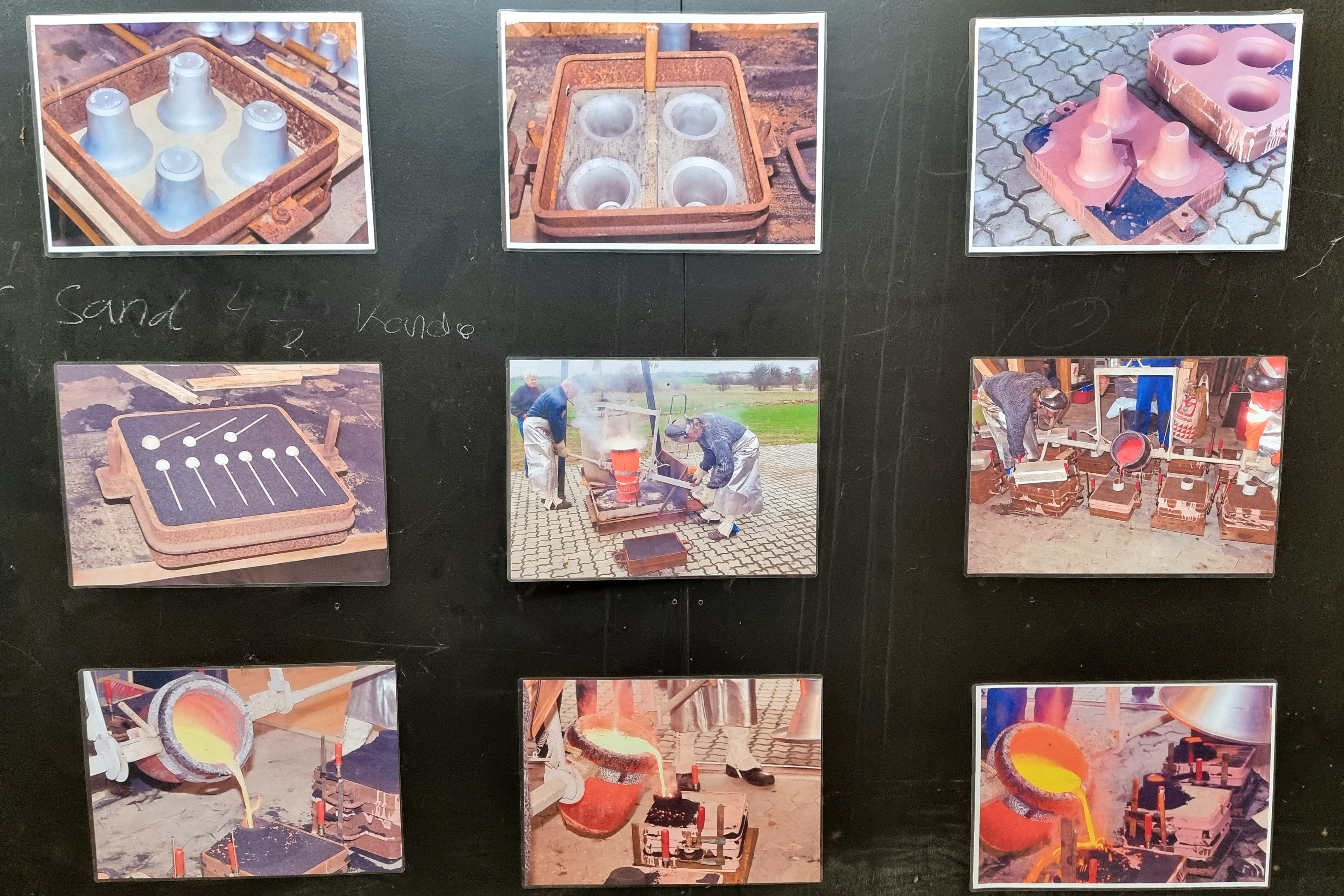 På billederne oven for kan du se den proces til skal til for at støbe de små klokker, som museet selv støber og sælger