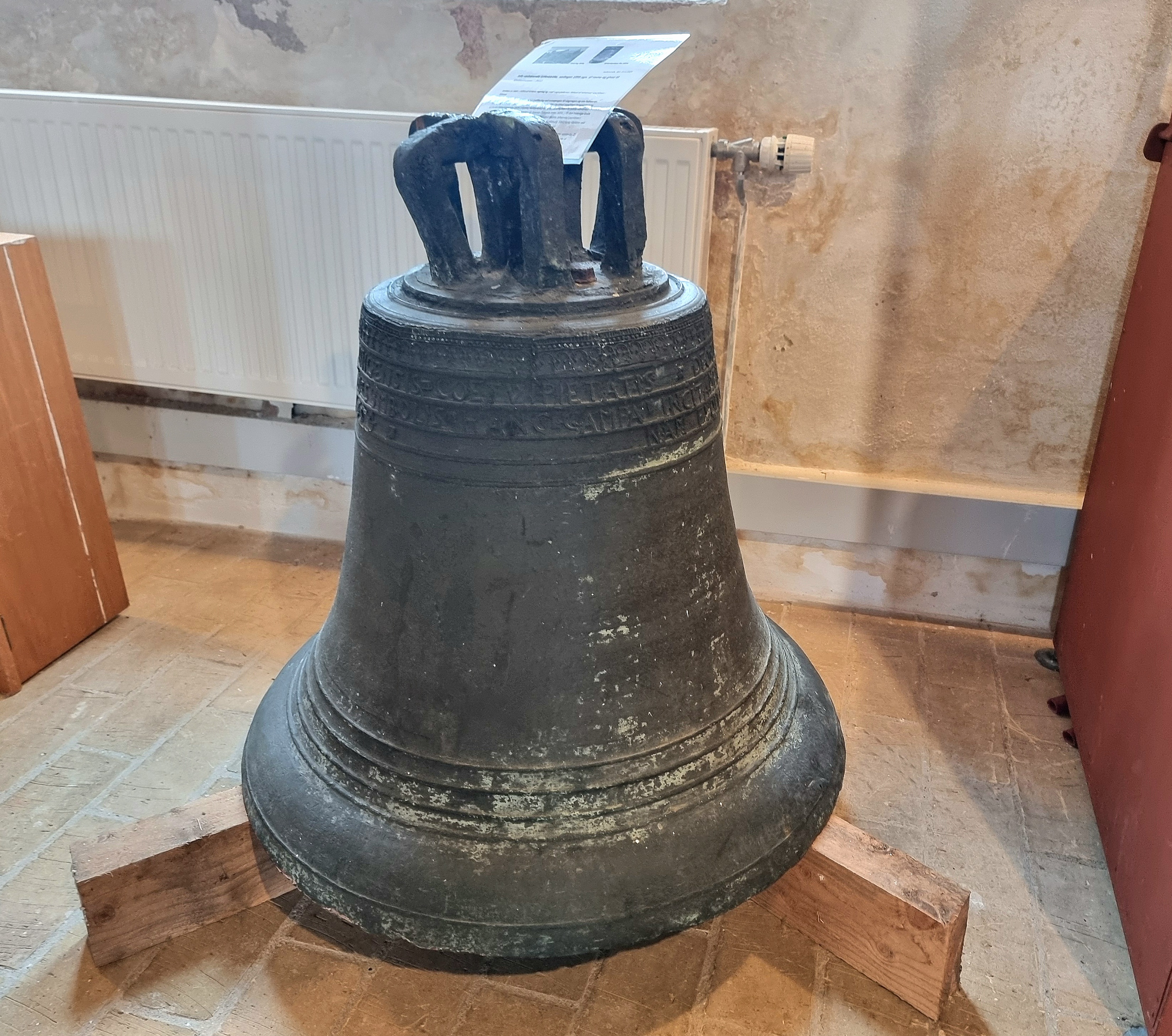 Denne beskadigede klokken med den harmoniske profil blev støbt af Johannes-Lauridsen i 1654 til Klakring Kirke for kirkens regning med tilskud fra sognebørnene